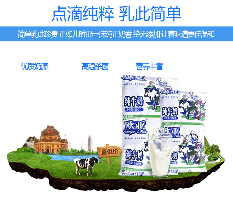 Dali Eurasian pure milk bag Yunnan milk 500g*12 bags date fresh damage package compensation