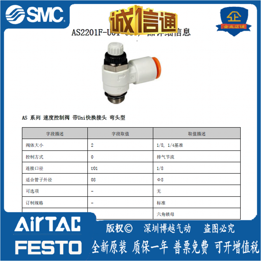 AS2201F-U01-08 Japanese SMC original screw speed control valve fake one penalty ten spot