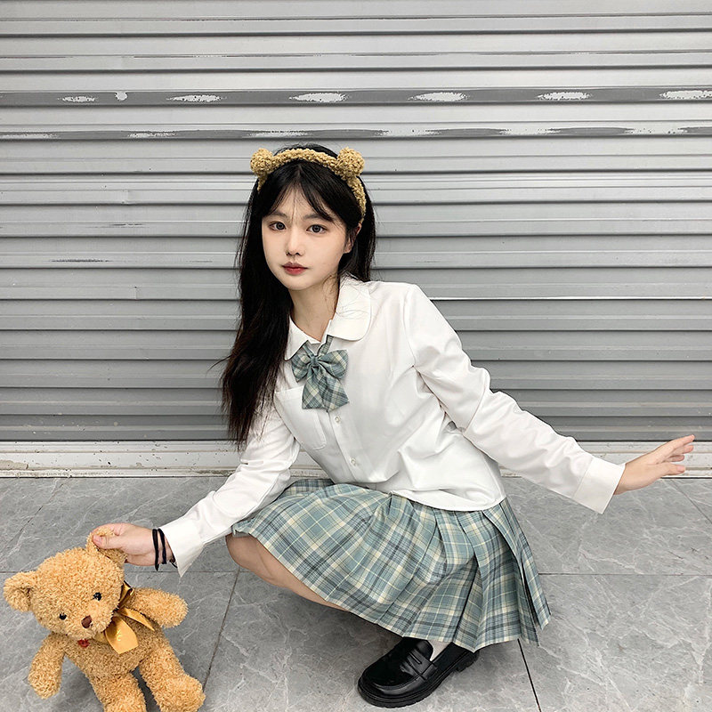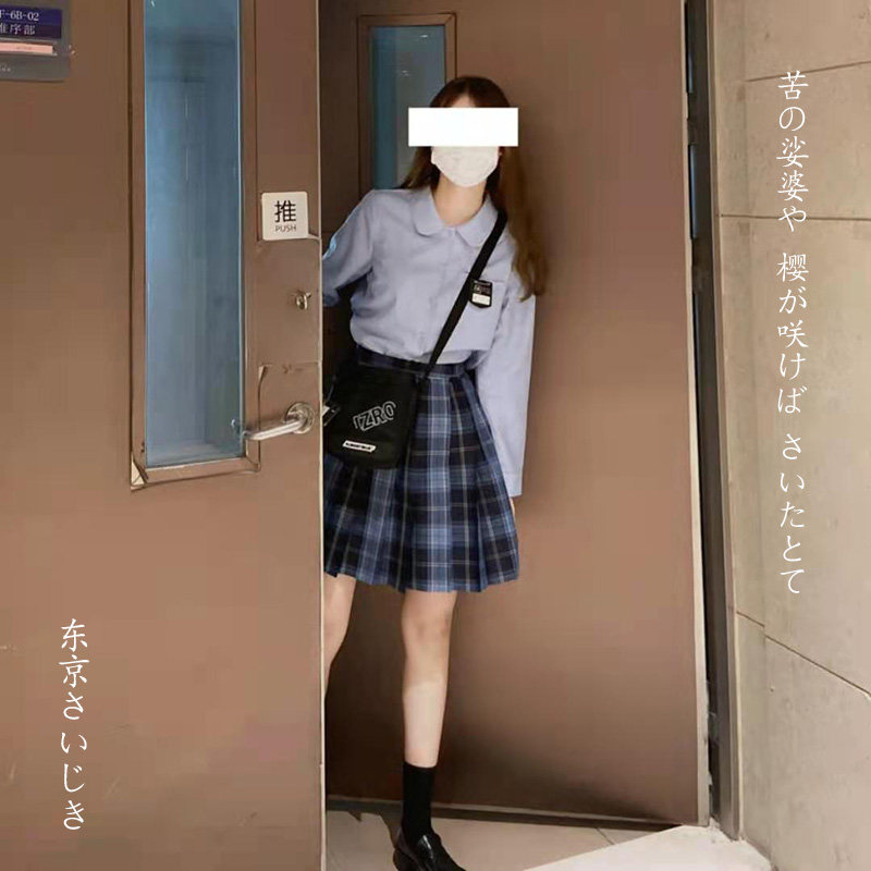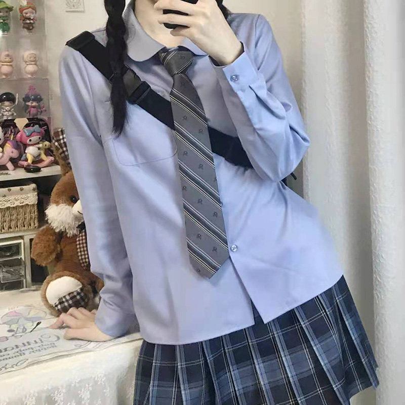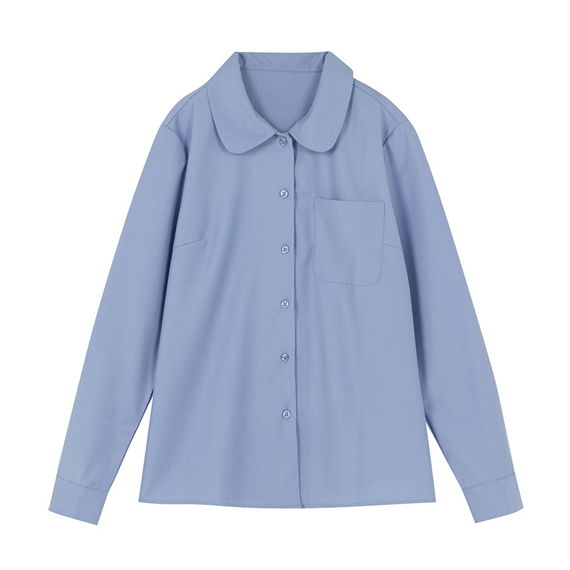 (Tokyo Chronicle) Original JK Spring and Autumn Long Sleeve Shirt Solid Color Round Neck Lan Ke Yi Meng