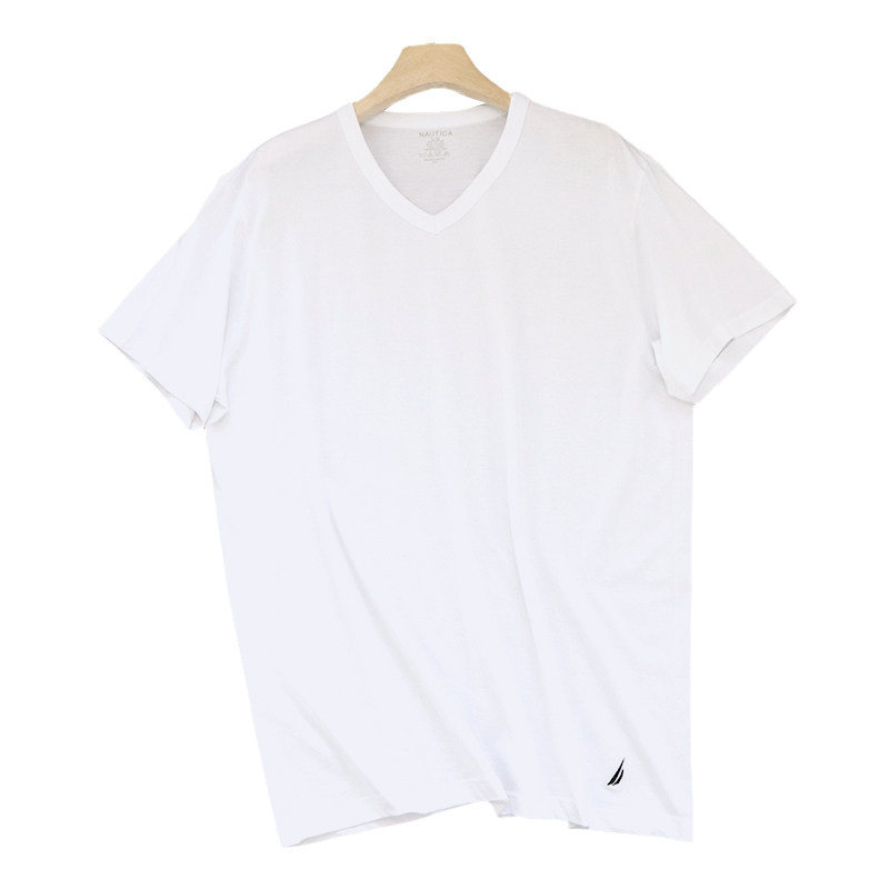 2 pieces nautica American light thin pure cotton T-shirt white V collar loose Euro code home lingerie original single man's shirt