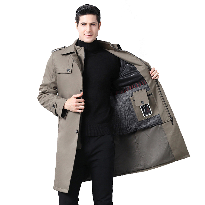 Winter winewear men's medium long version of detachable liner in older men's long version loose casual thickened jacket