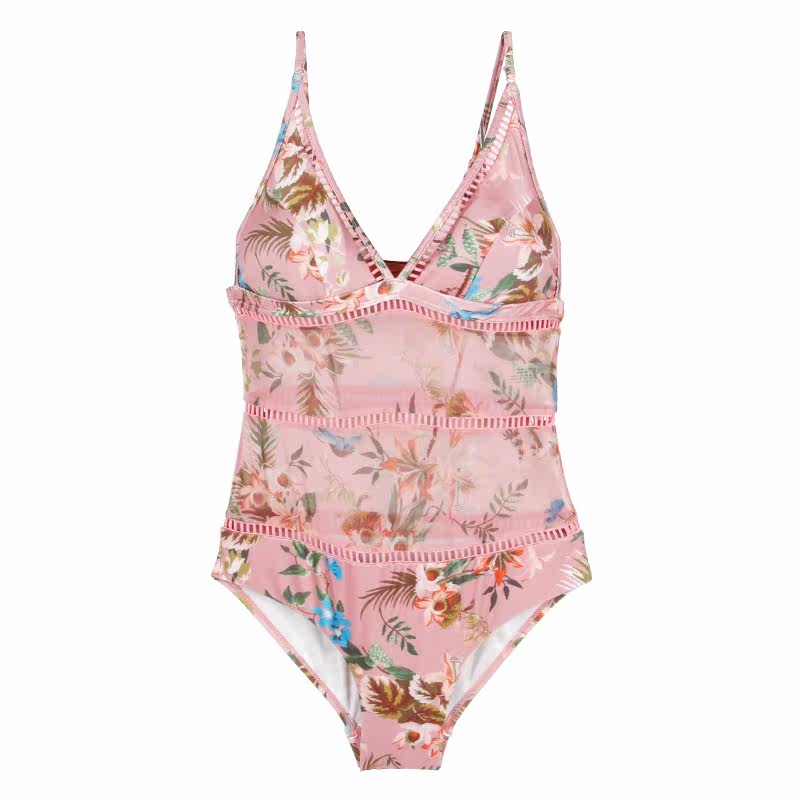 Even body swimsuit South Korean small breasts sexy deep V Broken Flowers Hollowed-out Veil for Thin Holiday Spa Triangle Bikini