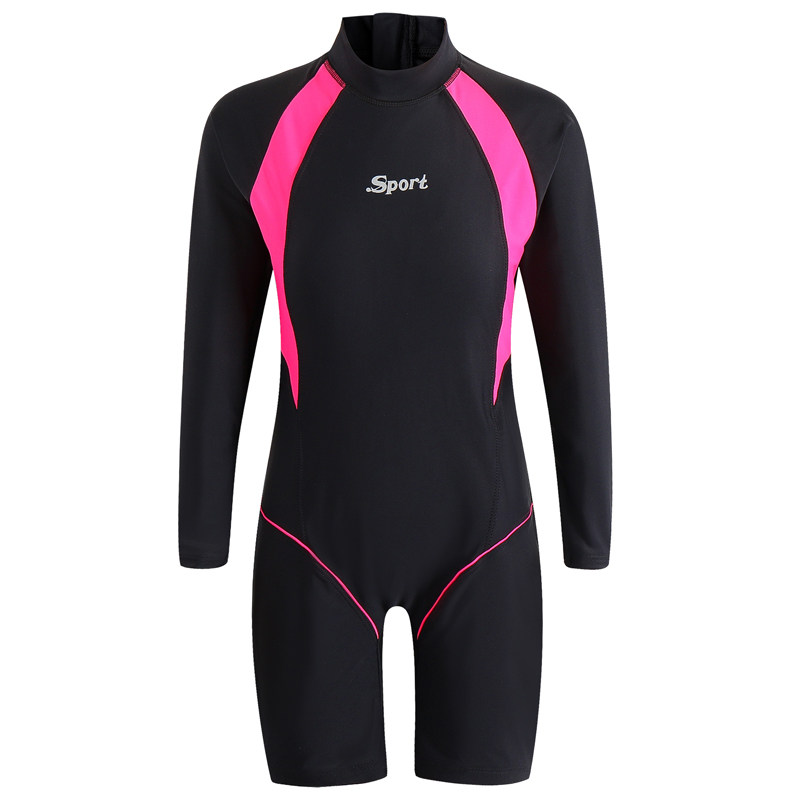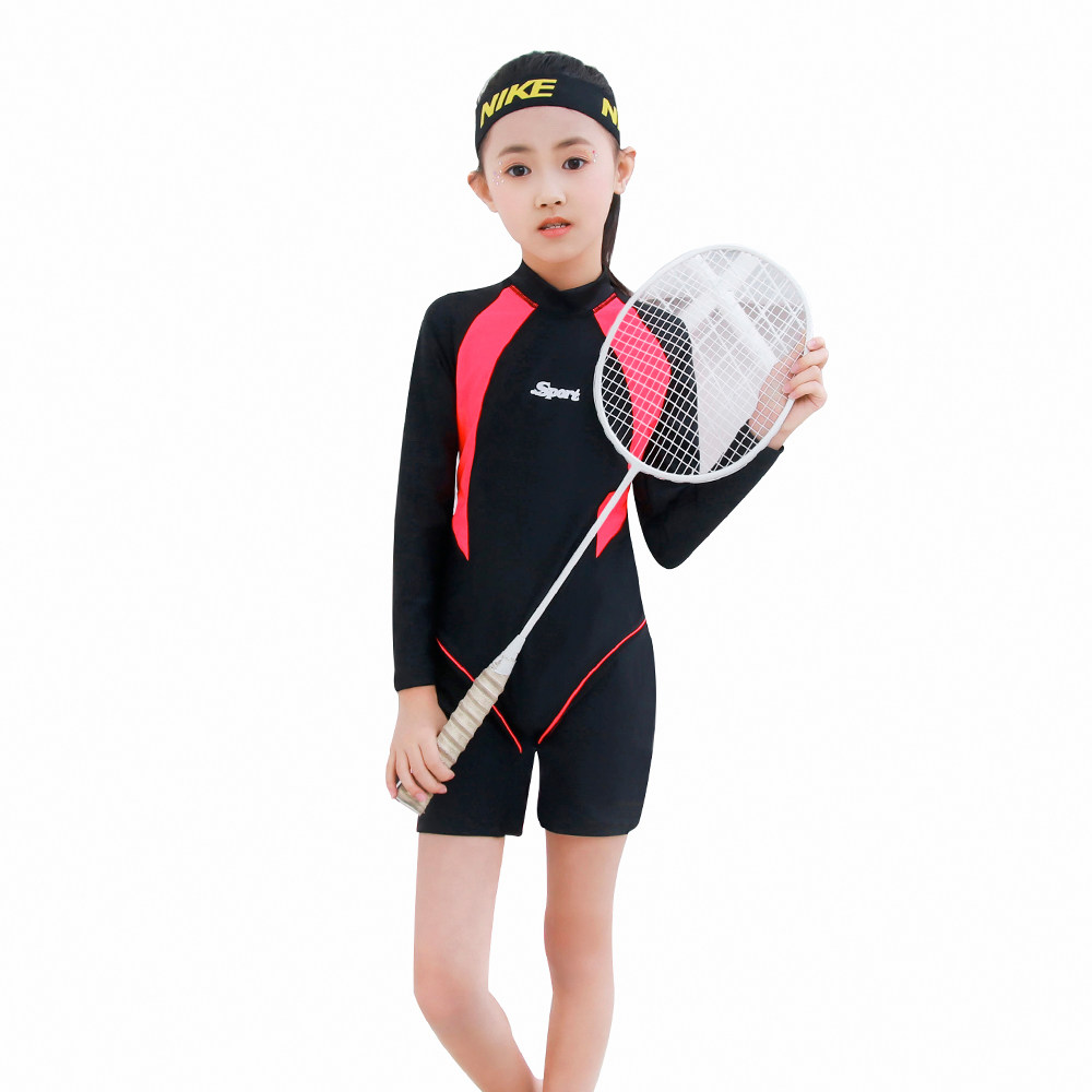 Children's professional training sunscreen quick-drying one-piece boxer long-sleeved middle-aged child Korean princess cute girl swimsuit