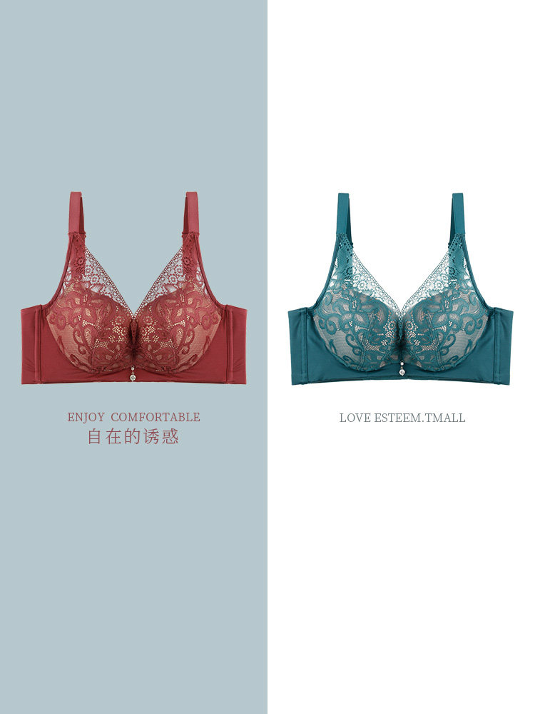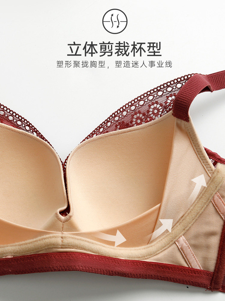 LE Aidai underwear women's light and thin gathered sexy lace comfortable no steel ring pull-up bra MT82041A2