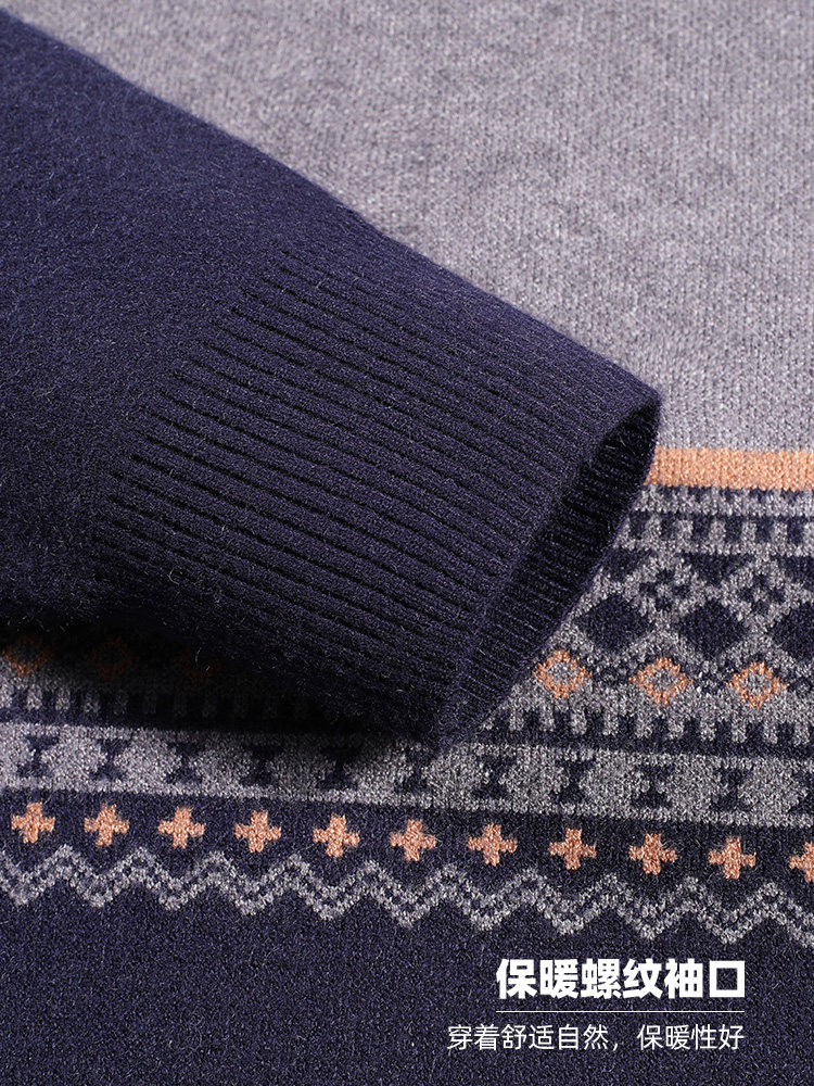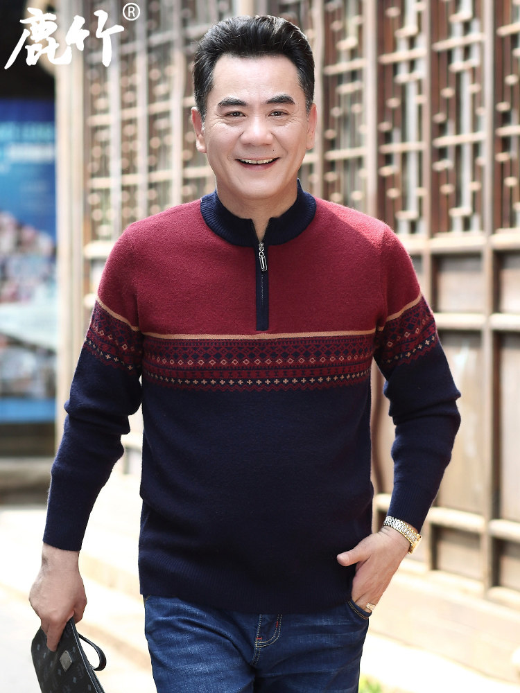 Luzhu middle-aged men's autumn and winter half turtleneck sweater dad winter warm sweater middle-aged and elderly thickened linen