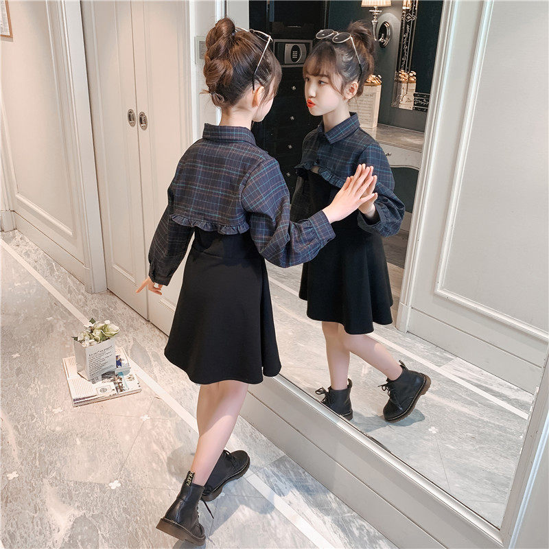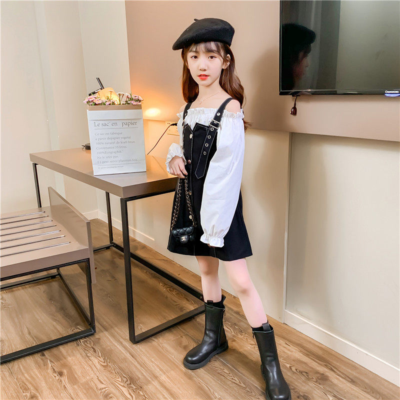 Girl bag dress suit fall children Yang Pi Han edition long sleeve shirt hang dress girl two tide