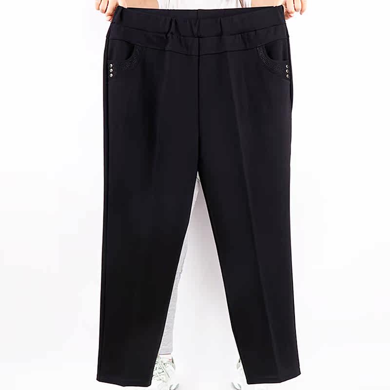 Large size pants mom elastic high waist straight slacks middle-aged loose stretch cotton black pants worn outside