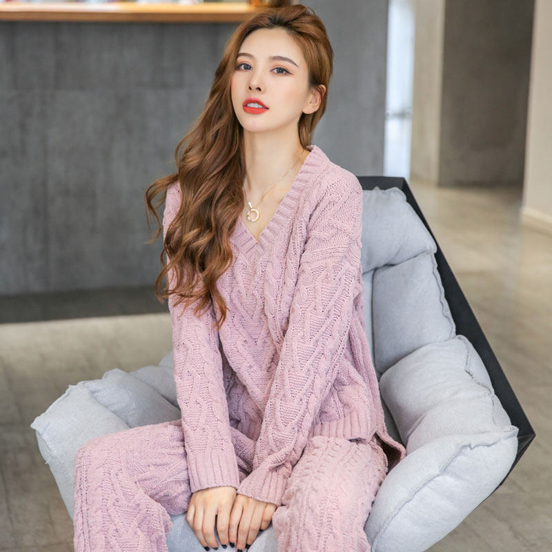 2022 new soft pajamas women's autumn and winter long-sleeved coral fleece thickened warm winter can be worn outside the home clothes