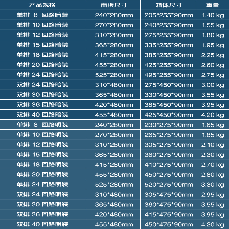 National standard 8 circuits concealed national standard 10 circuits concealed national standard 10 circuits exposed national standard 12 circuits concealed national standard 12 circuits exposed national standard 15 circuits concealed national standard 15 circuits exposed national standard 18 circuits