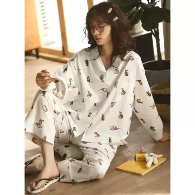 Pajamas female spring and autumn long sleeve cotton sweet and cute cartoon princess style students Korean autumn and winter thin home clothes