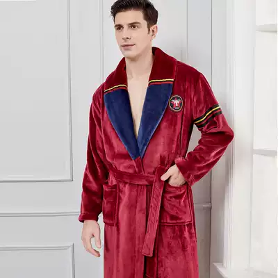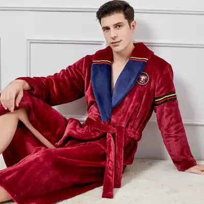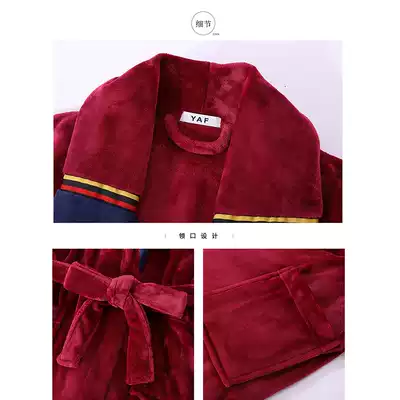 Y A F gown women autumn and winter thickened coral velvet pajamas extended couples bathrobe flannel men's home clothes
