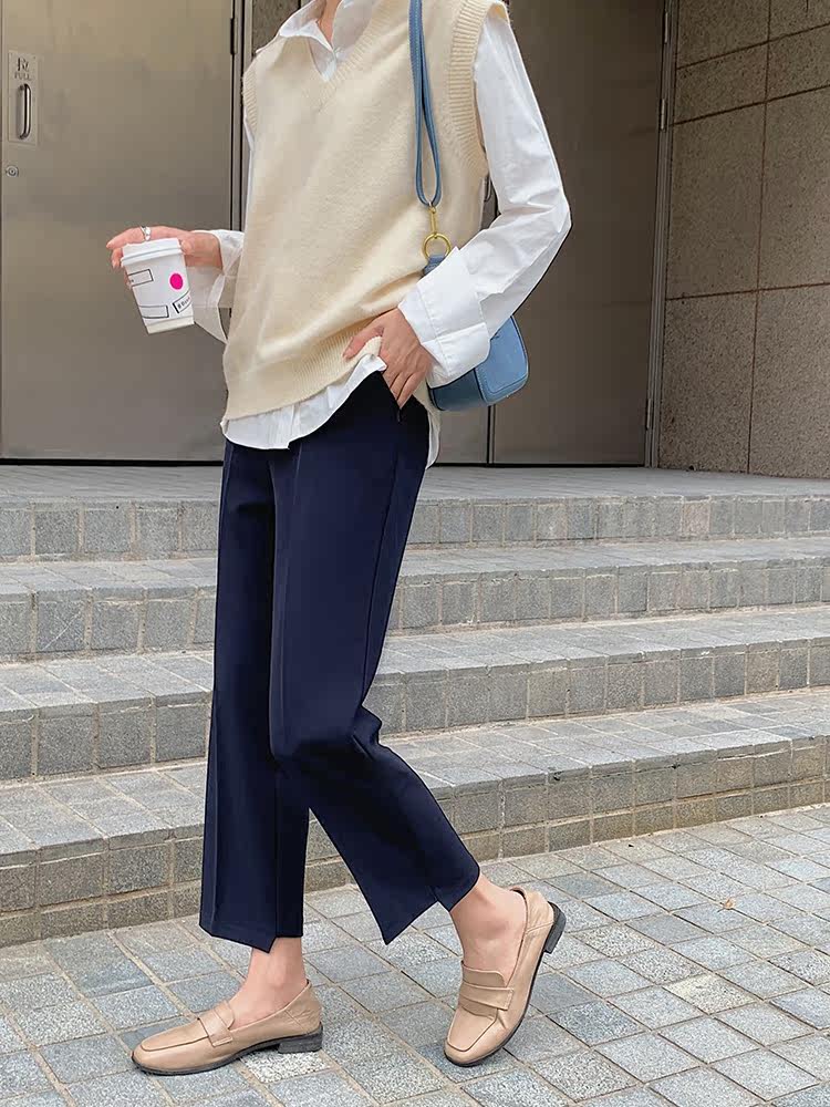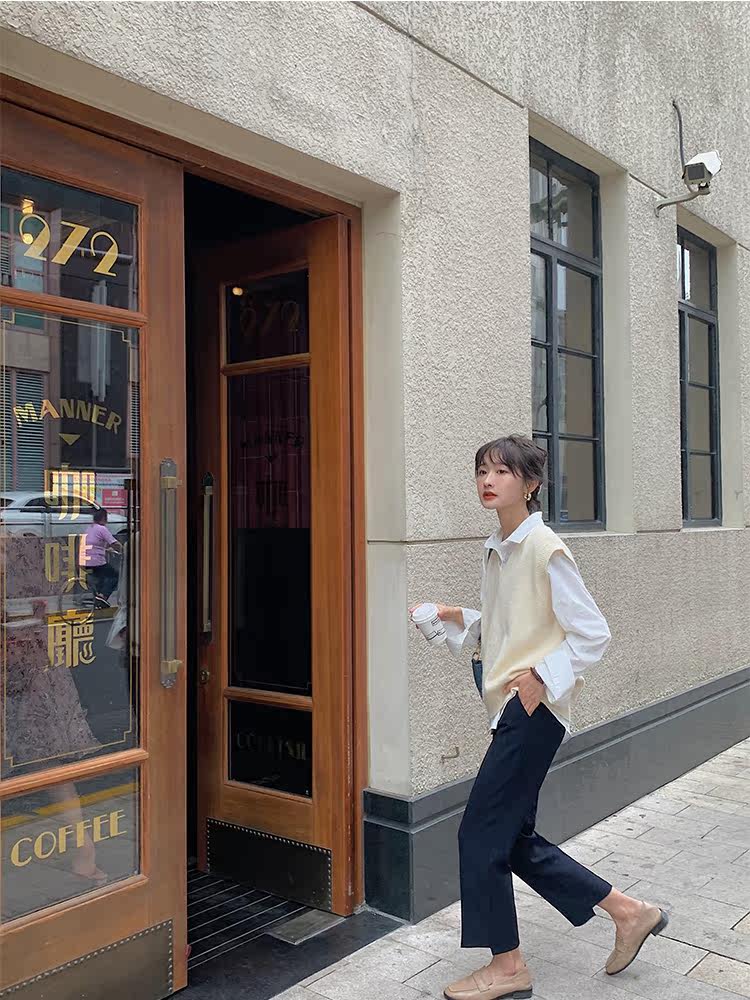 Autumn new wide-leg pants female Korean version loose micro wide-leg straight pipe nine-point pants slim casual suit trousers