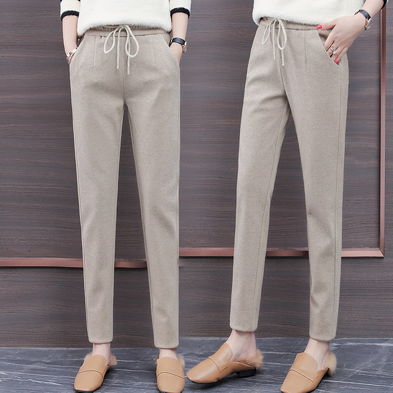 Wool harem pants women's autumn and winter 2022 new elastic waist radish casual women's pants small feet woolen straight pants women