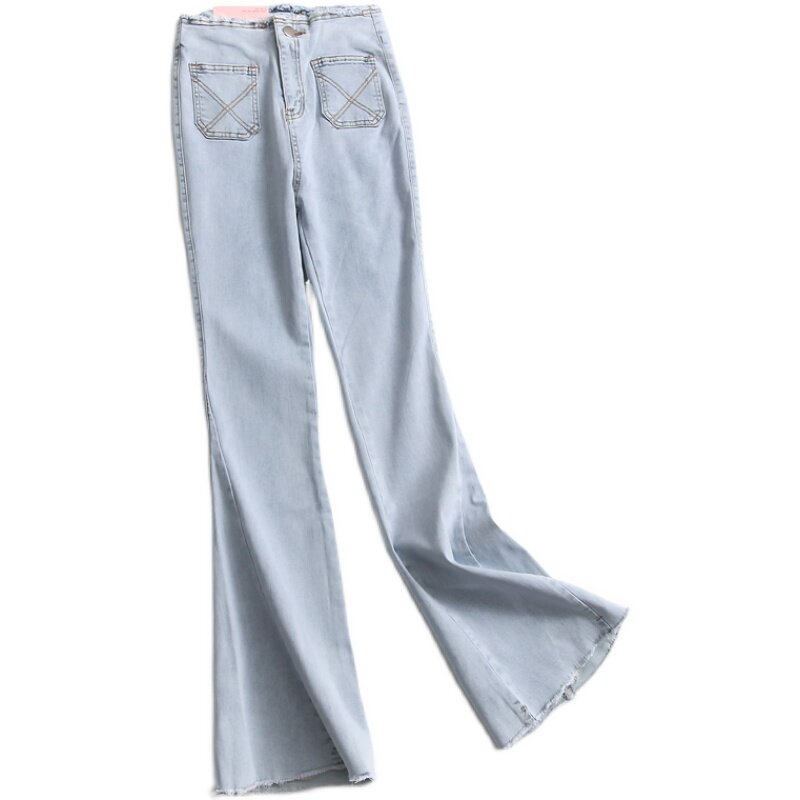 G716 Stretch Grinding White Collage Pocket High Waist Slim Slim Slight Boot Pants New Versatile Women's Jeans Trousers