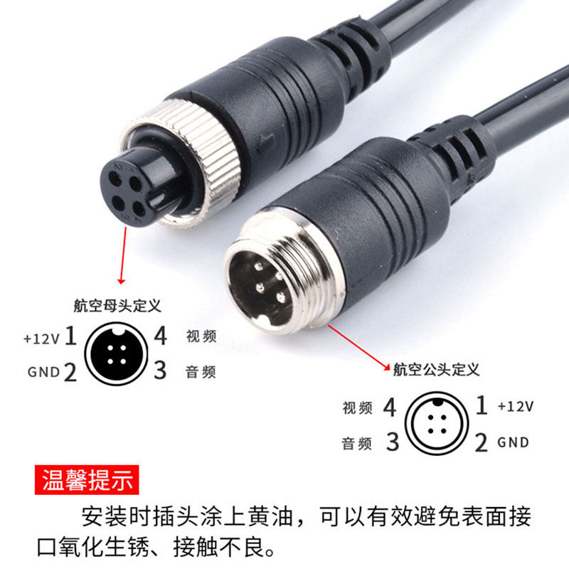 Trailer backing image M12 on-board surveillance video camera connection truck 4-core air connector extension cord