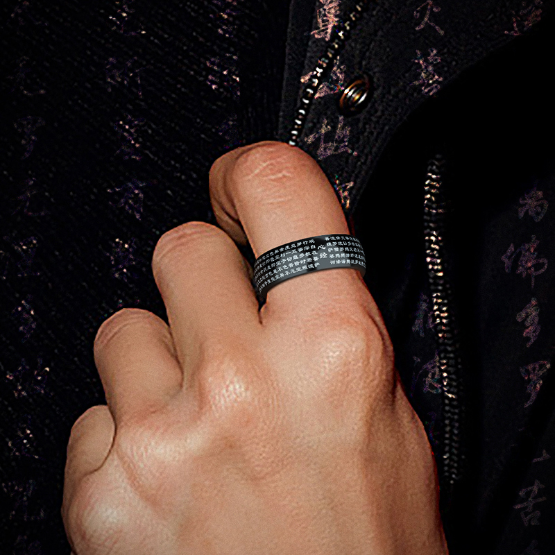 Free Lettering Ring Men Titanium Steel Tide Male Index Finger Ring Tail Ring National Wind Fashion Personality Ornament New