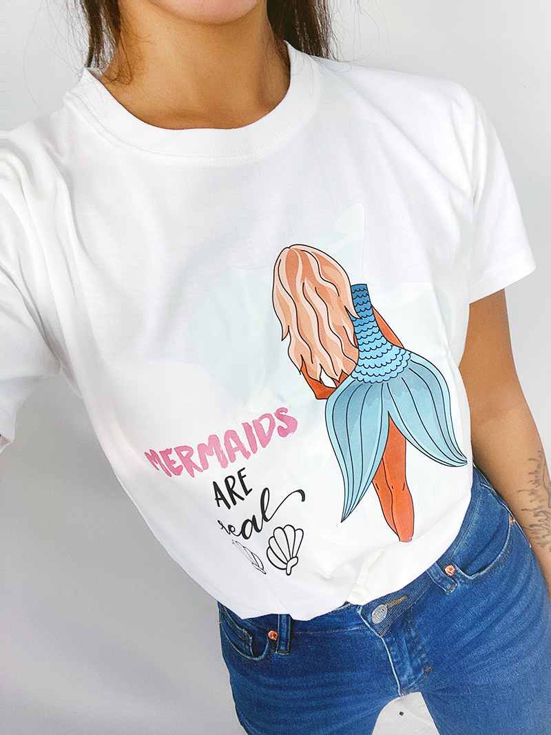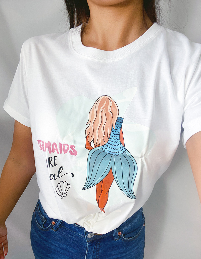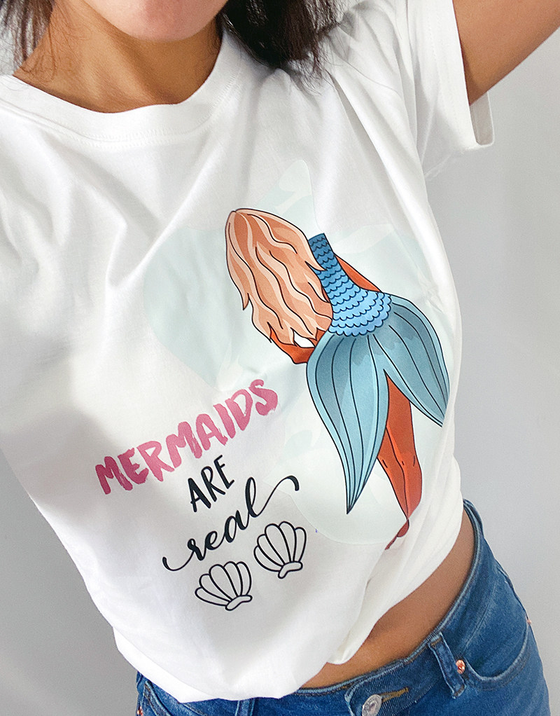 FHC new moisture wicking original mermaid series printing pure cotton T-shirt sports short sleeve