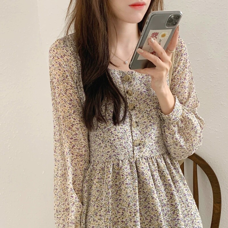 Picture color dress (Korean version Temperament Unconspicuic Little Subocean short dress) C5180-A Image Color Chopped Flowers Skirt CS0199 Black Crushed Flowers Ocean Dress CS02
