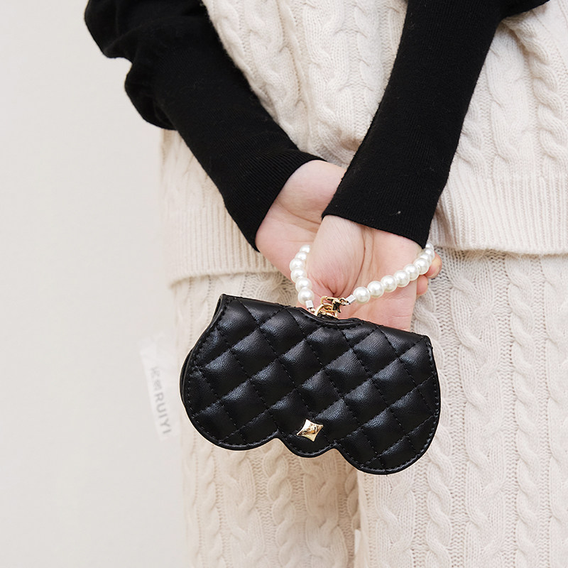 Small fragrant wind eye mirror box Women ins sunglasses containing portable black glasses protective sleeve folding and anti-pressure personality hanging bag