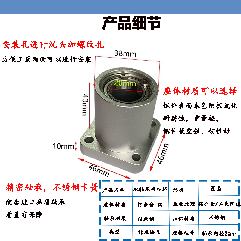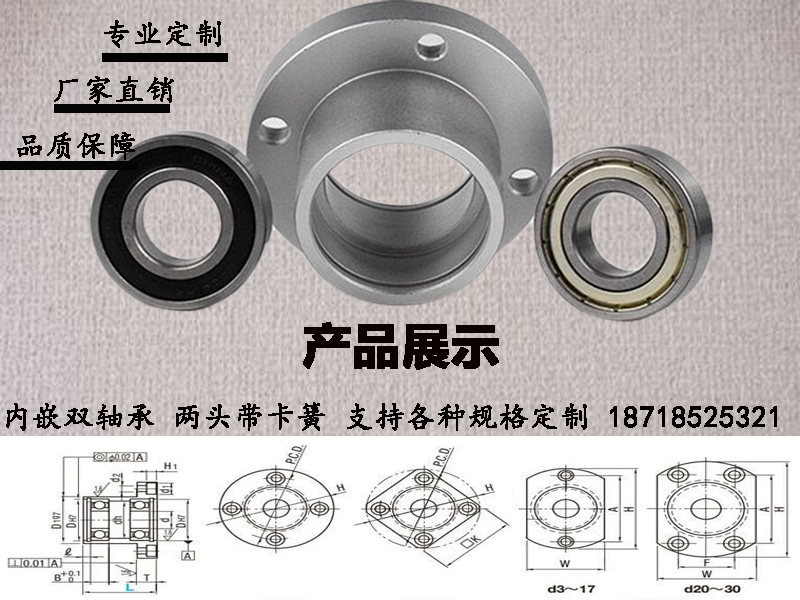 Bearing fixing base assembly aluminium alloy material square flange seat with double axle bearing snap spring bush type abutment