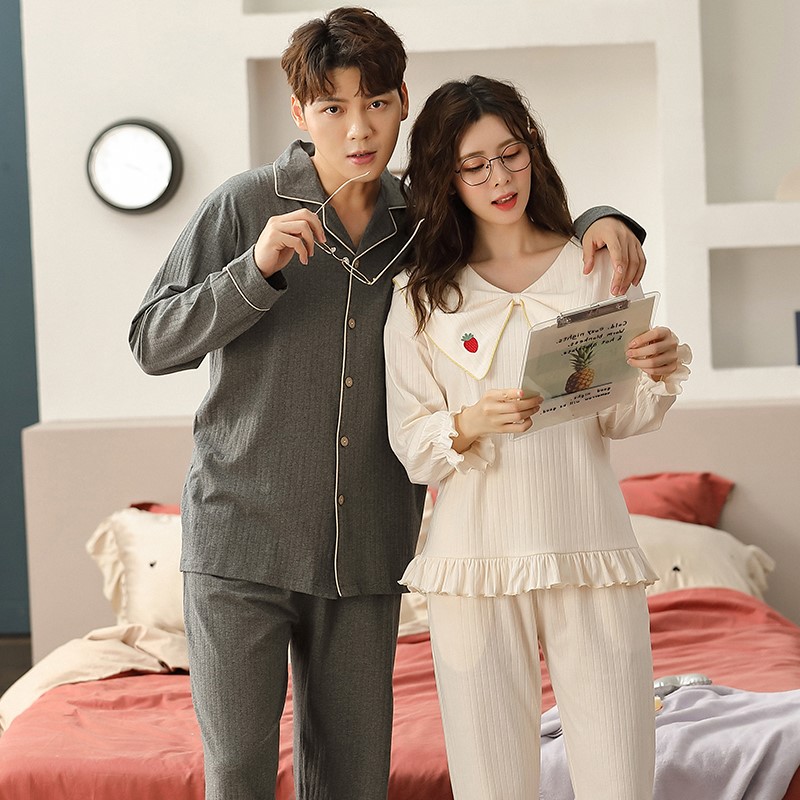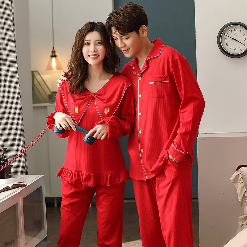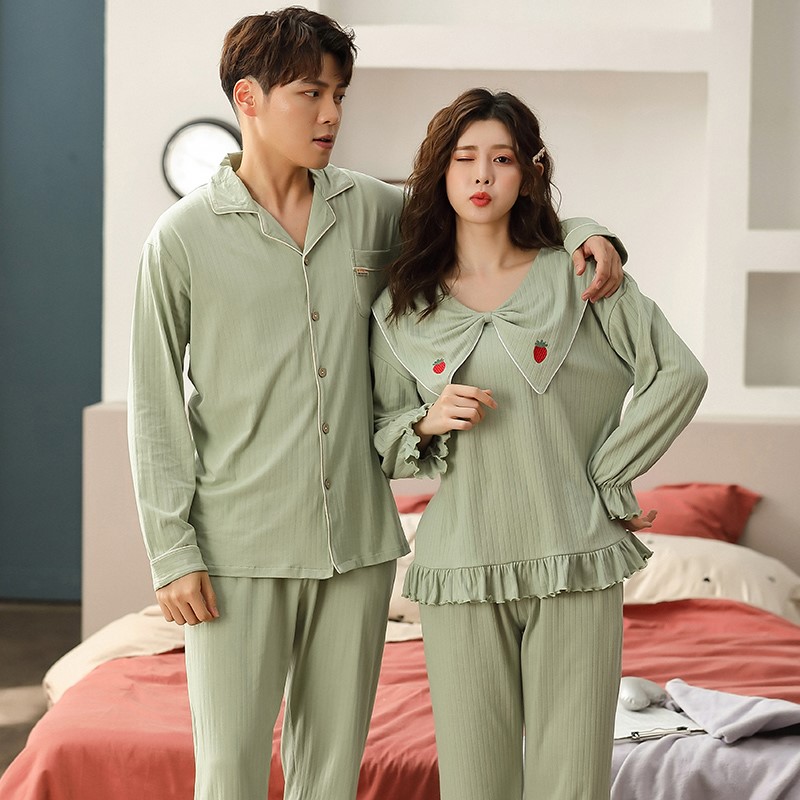 Green Lovers Pyjamas Woman Spring Autumn style Long sleeves Pure cotton 2022 New teen men's fall winter suit