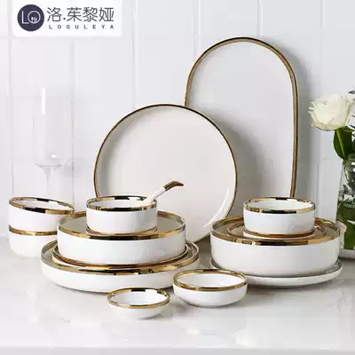 LO GULEYA ceramic DISH set Net celebrity creative personality household tableware Rice bowl Soup bowl instant noodle bowl steak plate