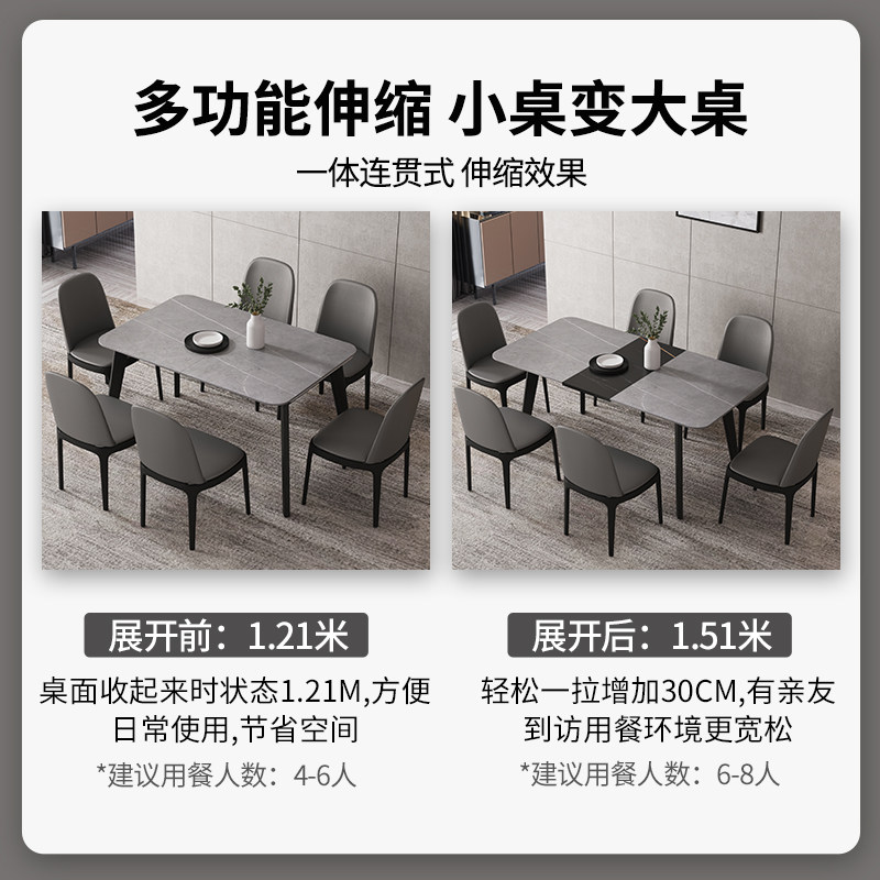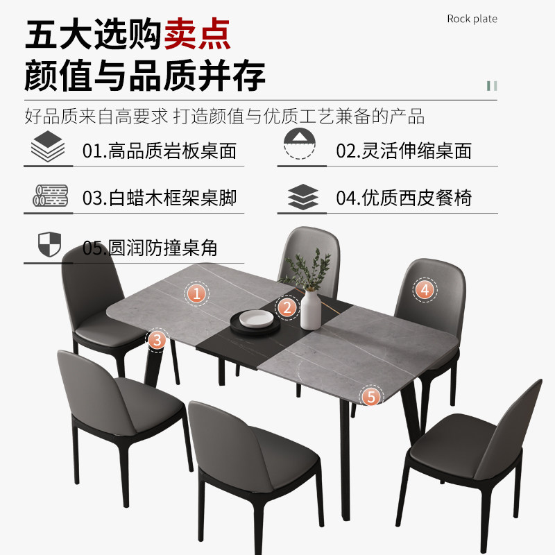 Modern extremely simple folding dining table and chairs combined small family type home rock plate table Italian style telescopic rectangular dining table