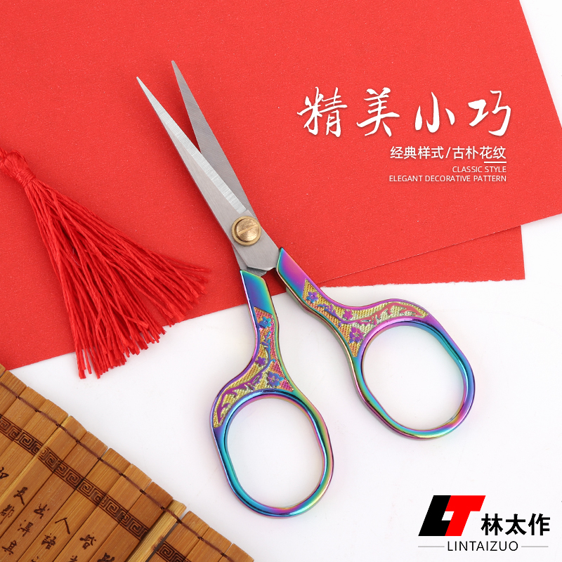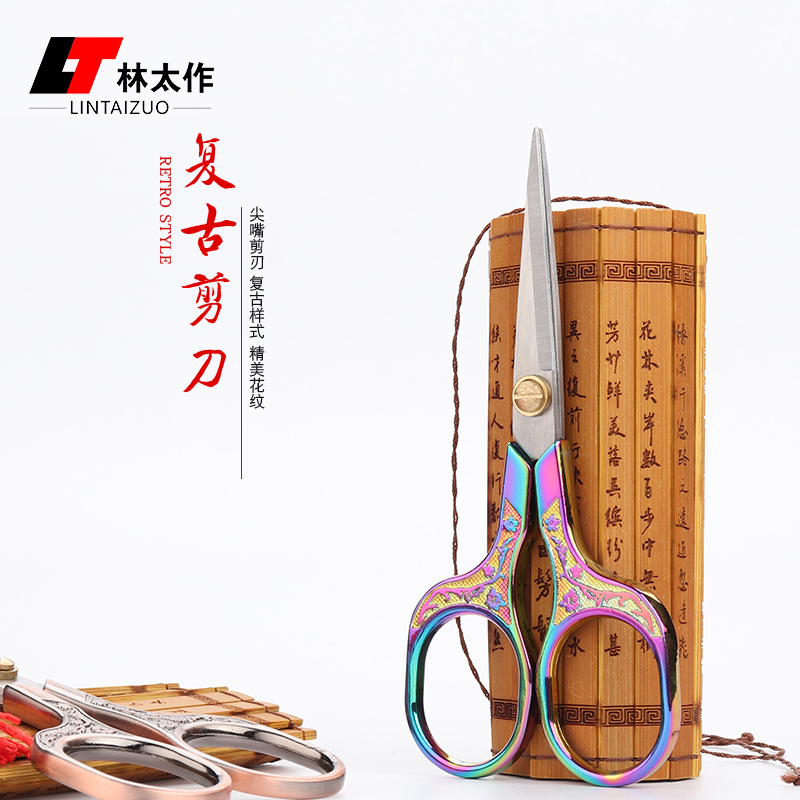 Lin Tai made hand-cut stainless steel household sewing thread head embroidery tailor paper cut paper exquisite pointed mouth vintage small scissors
