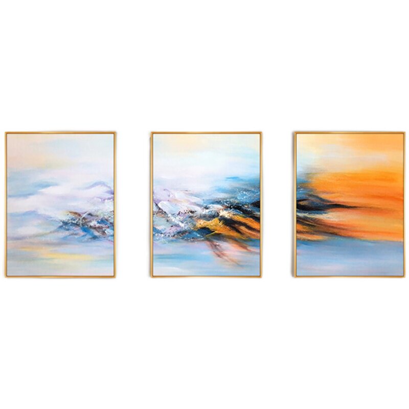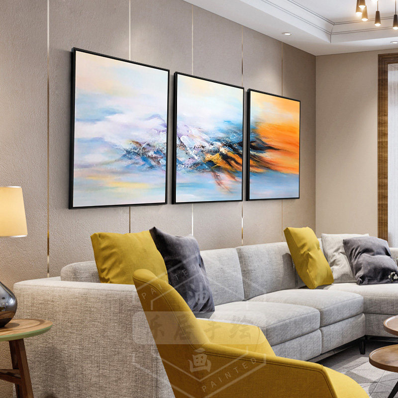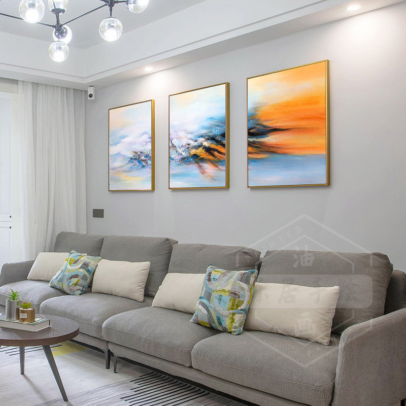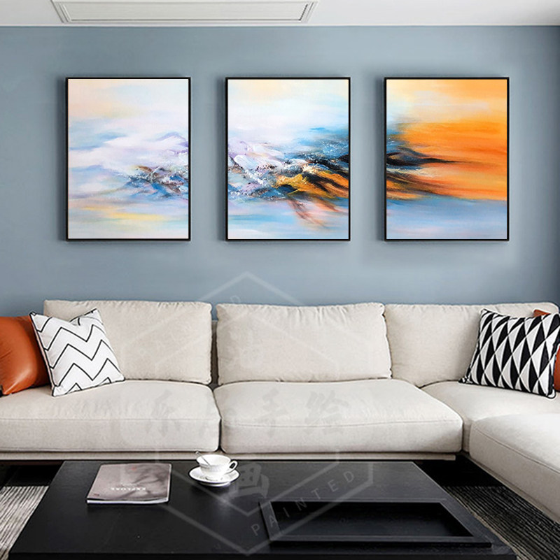 Pure hand-painted oil painting living room sofa background wall decoration painting modern minimalist hanging painting triple abstract art Dafen Village