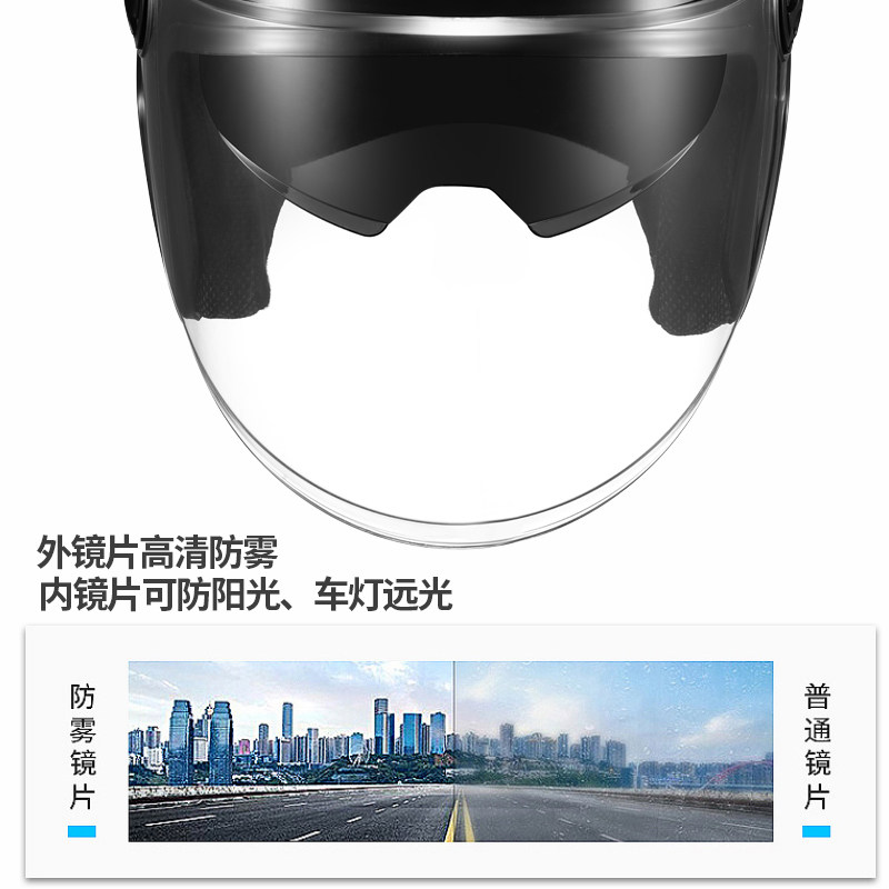 Battery Electric Car Safety Helmet Electric Male Safety Helmet Grey Four Seasons Sun Protection Double Mirror Half Armor Woman Winter Warm Safety Helmet