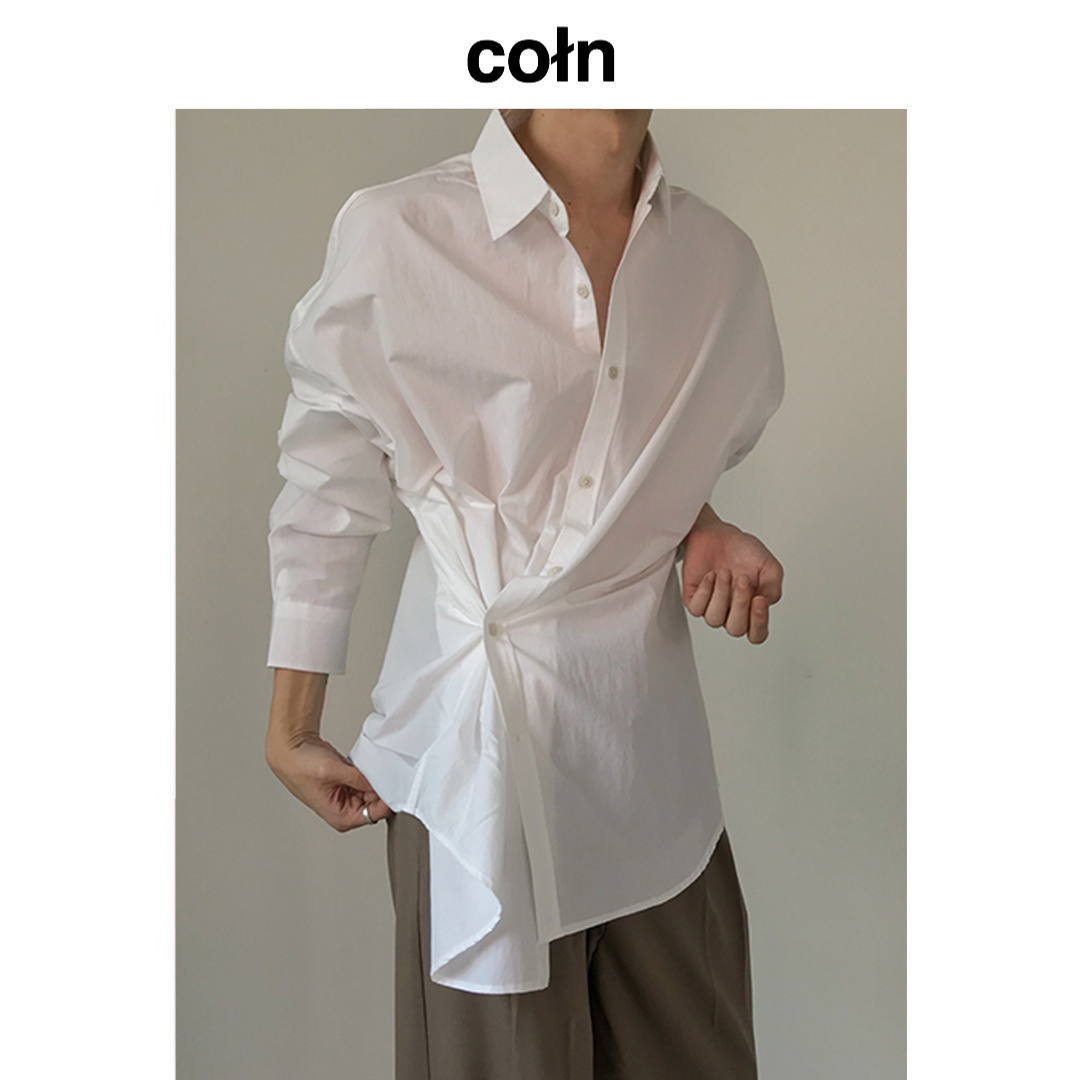 COLN has 2 web holes yet trendy to no good 2 wearing laws pure color shirt 1 button is a god pen