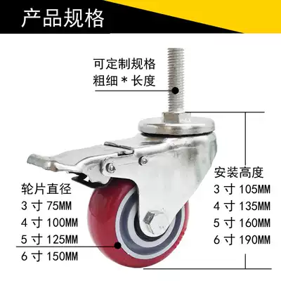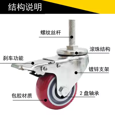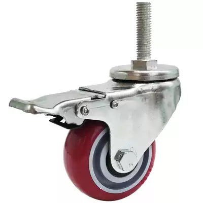 m12 screw universal wheel glue mute heavy bearing brake mechanical caster with threaded screw polyurethane wheel