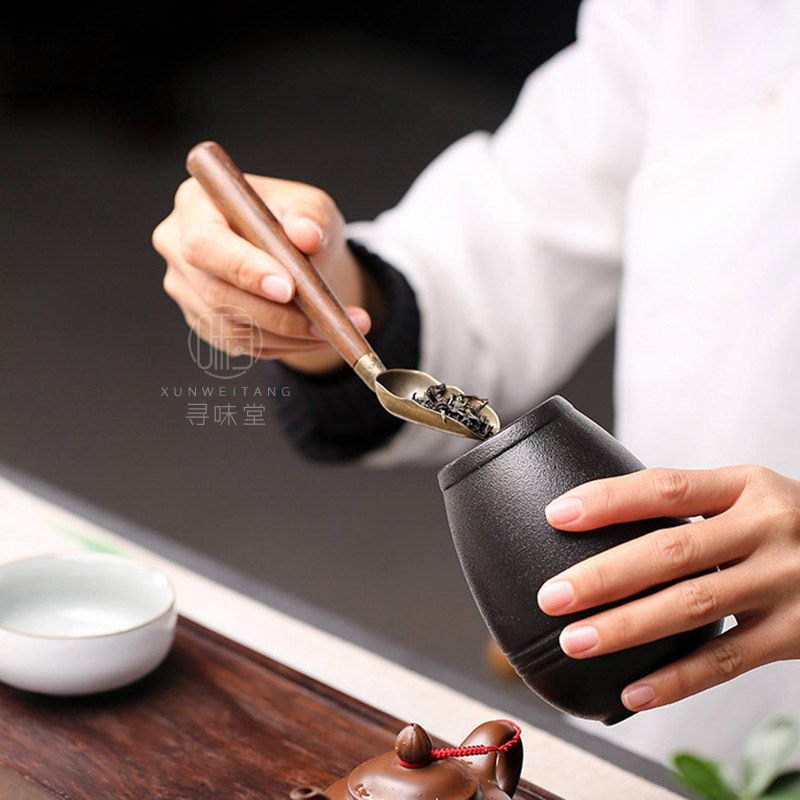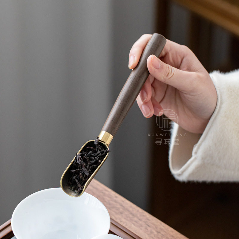 Delicate Alloy Tea Spoon | Black Sandalwood Handle Teaspoon Teaspoon Tea Scoop Tea Spoon Small Shovel Metal Tea Set Tea Duct Accessories-Taobao