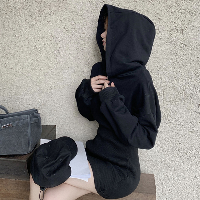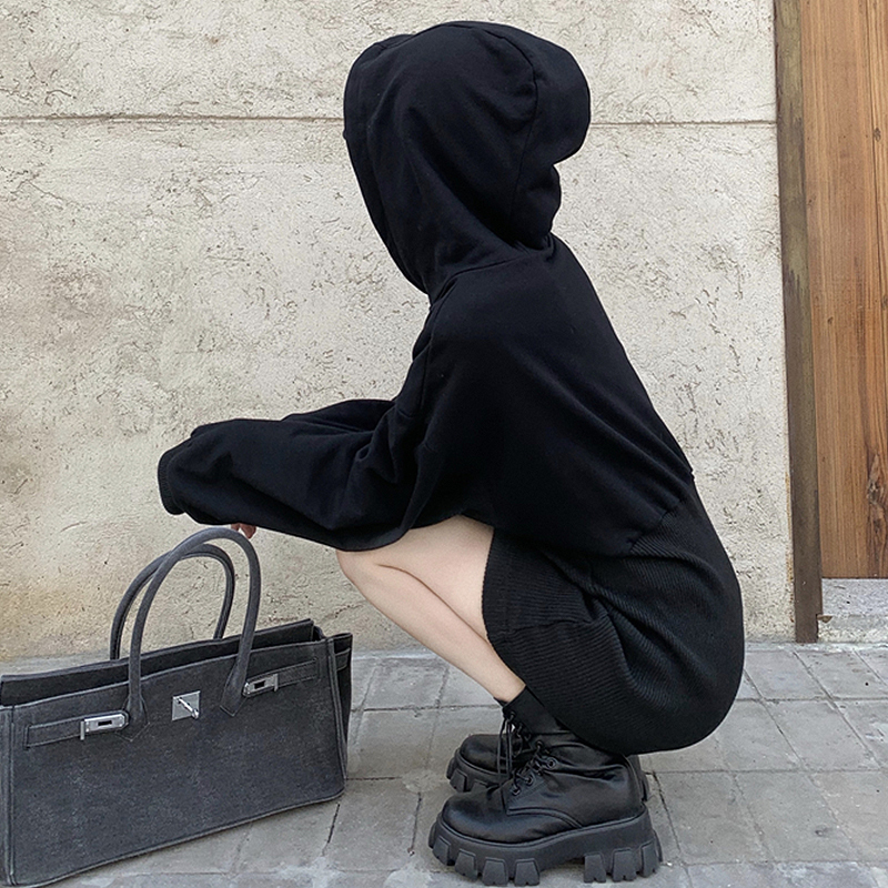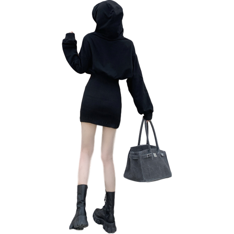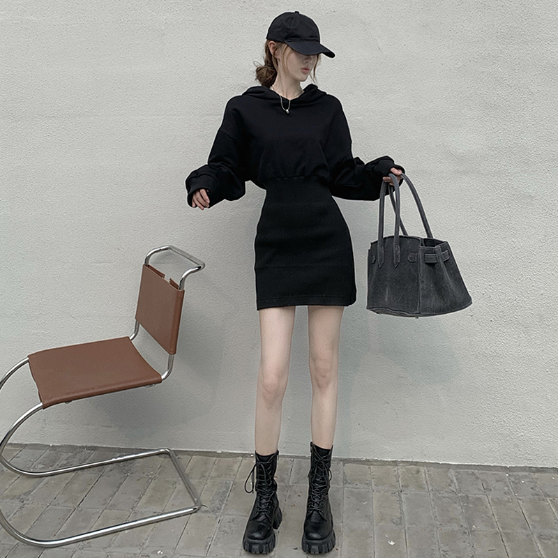 Early spring new reduced age lean small subheben windy black thick cotton T foreign dress cashew slim wrap hip skirt children