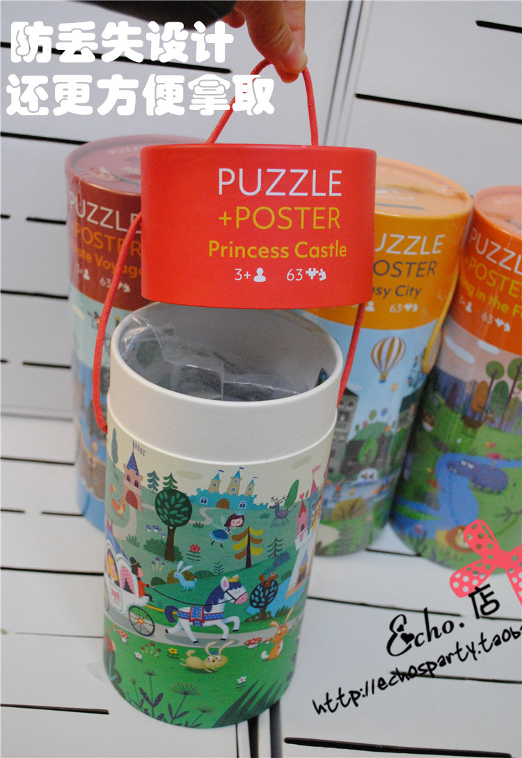 Hand Bucket Loaded children 63 pieces of large cardboard jigsaw puzzle good-looking male girl creative puzzle toy 3-6-year-old gift box