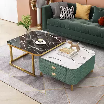 Double soy sauce coffee table combination-black and white marbled glass-beige technology cloth soft bag-black frame Double soy sauce coffee table combination-double white marbled glass-beige technology cloth soft bag-black frame Double soy sauce