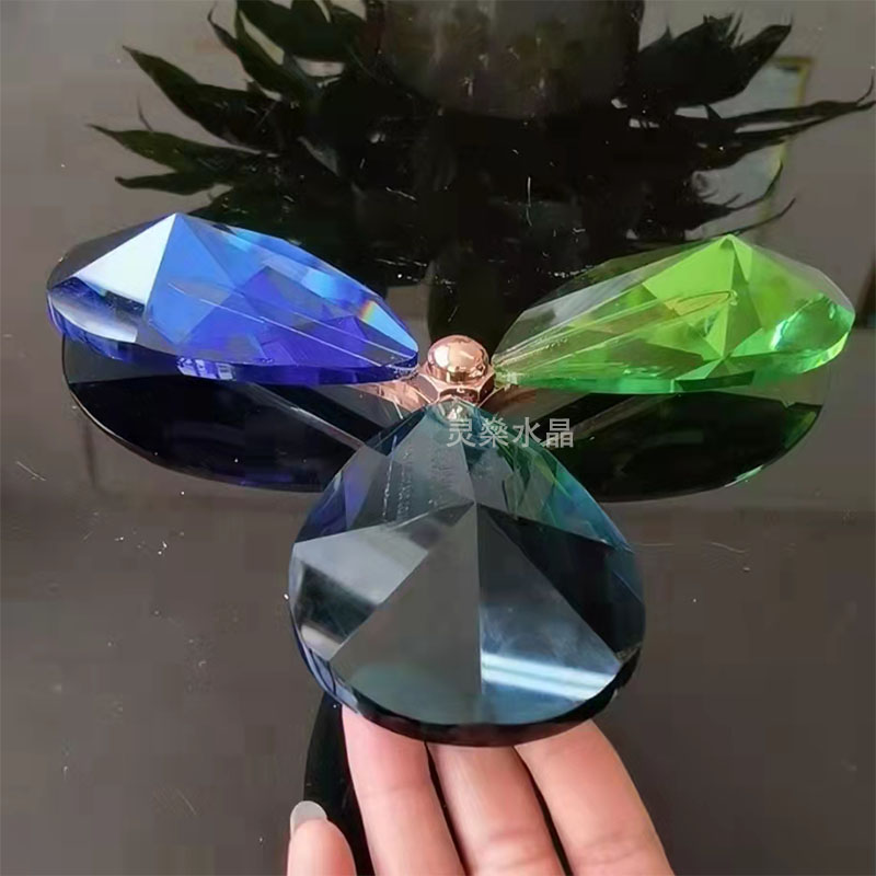 Colored art glass crystal screen style sub-design colorful crystal leaves windmill shape raindrops partition background