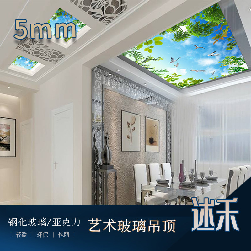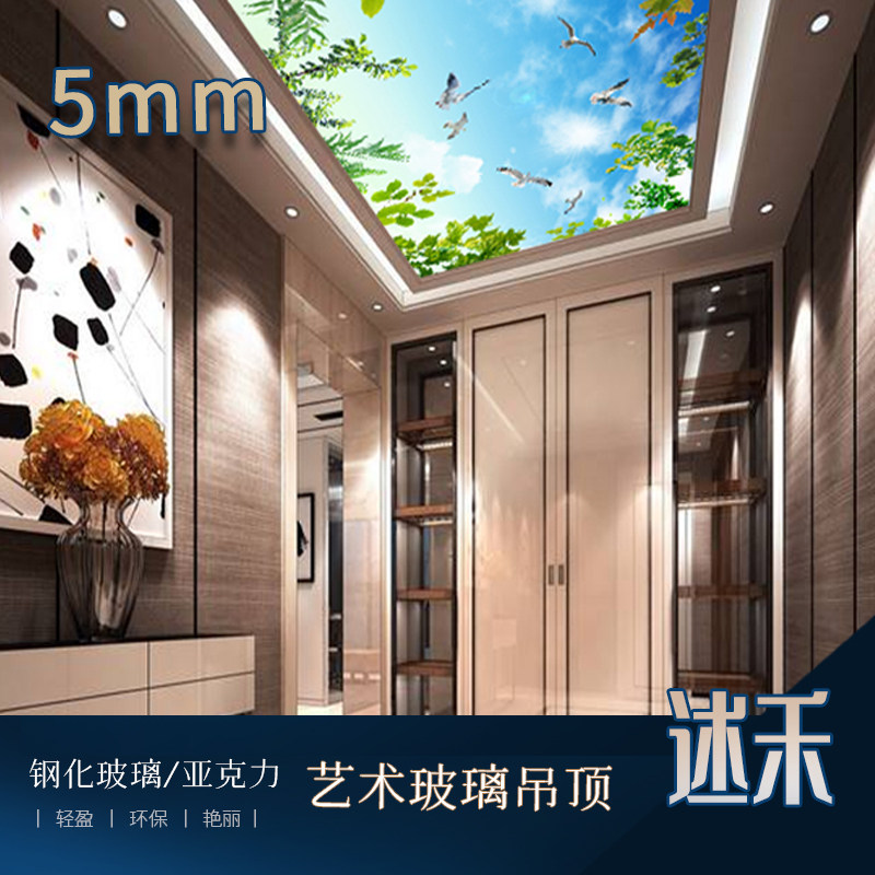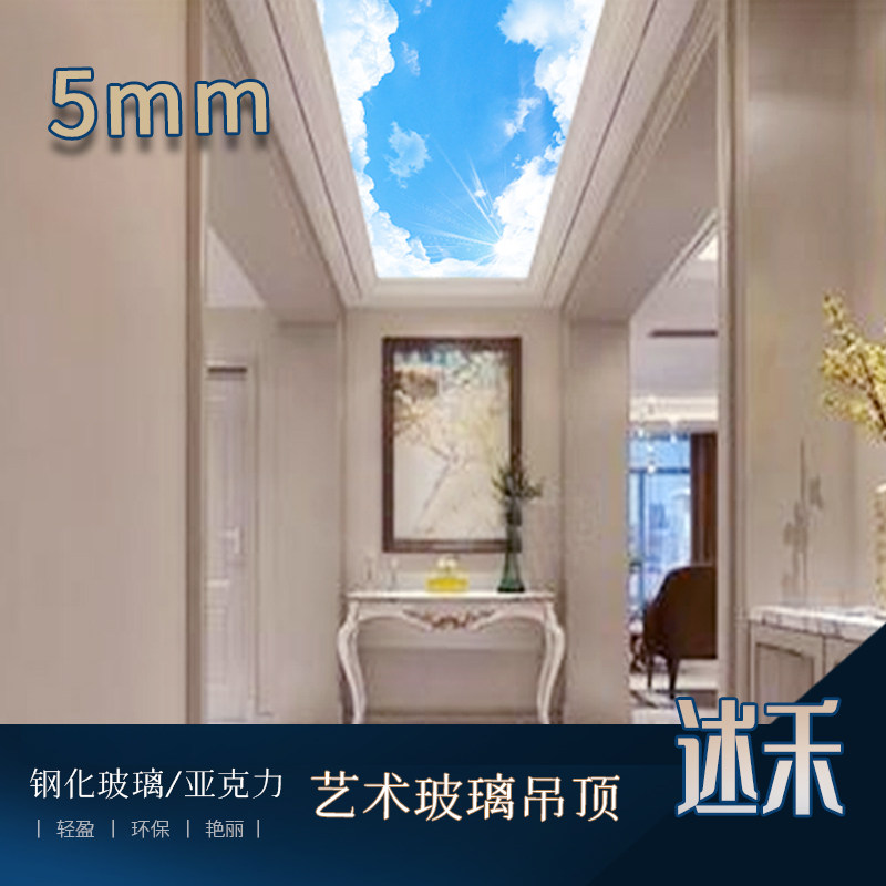 Blue sky and white clouds Art glass suspended ceiling Acrylic organic light transmittance Simple living room entrance corridor aisle ceiling