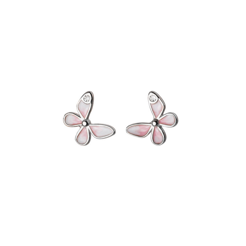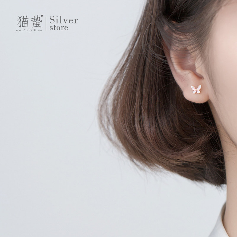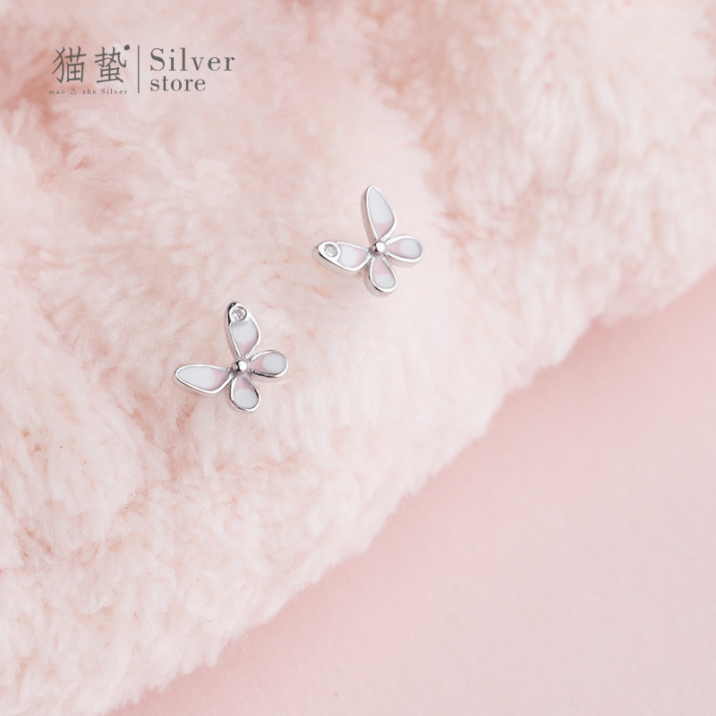 Cat jellyfish 925 pure silver powder color drop glaze small butterfly ear nail 2021 new anti-allergy fresh and small cute ear nail
