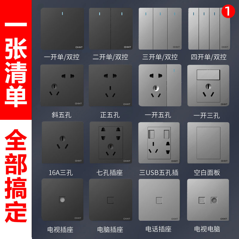 Chint conjoined frame switch socket panel 86 type combination conjoined frame black dark gray gold concealed