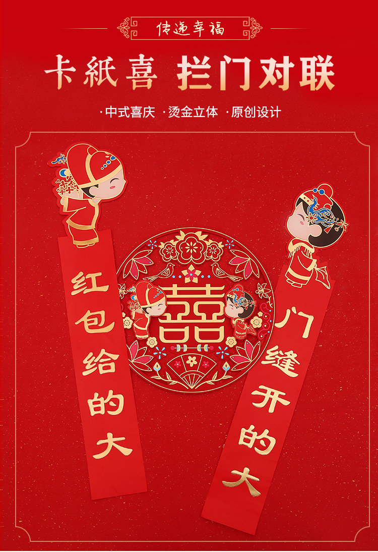 Wedding couplets, newly married gates, happy couplets, door couplets, happy couplets, men and women, decorations, wedding supplies