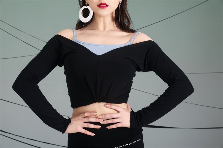 Betty's new Latin dance suit Latin dance practice Dancing Costume dresses Long sleeves sling two pieces of jacket BD09