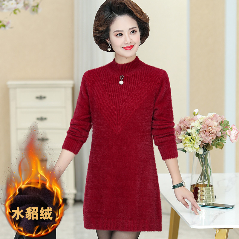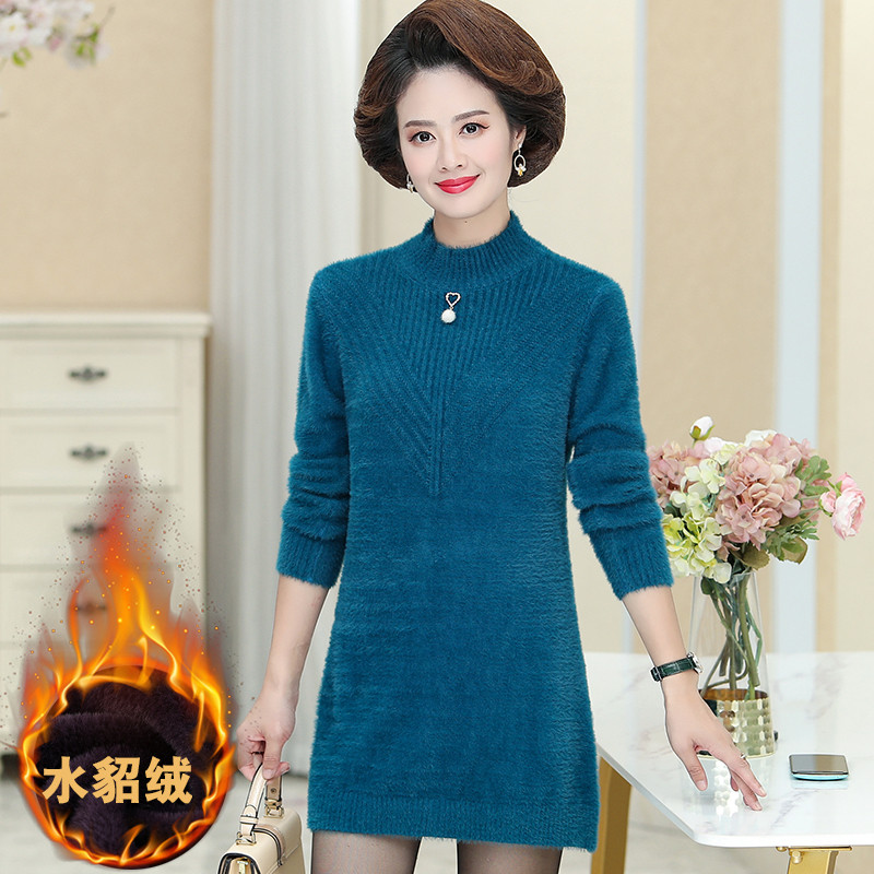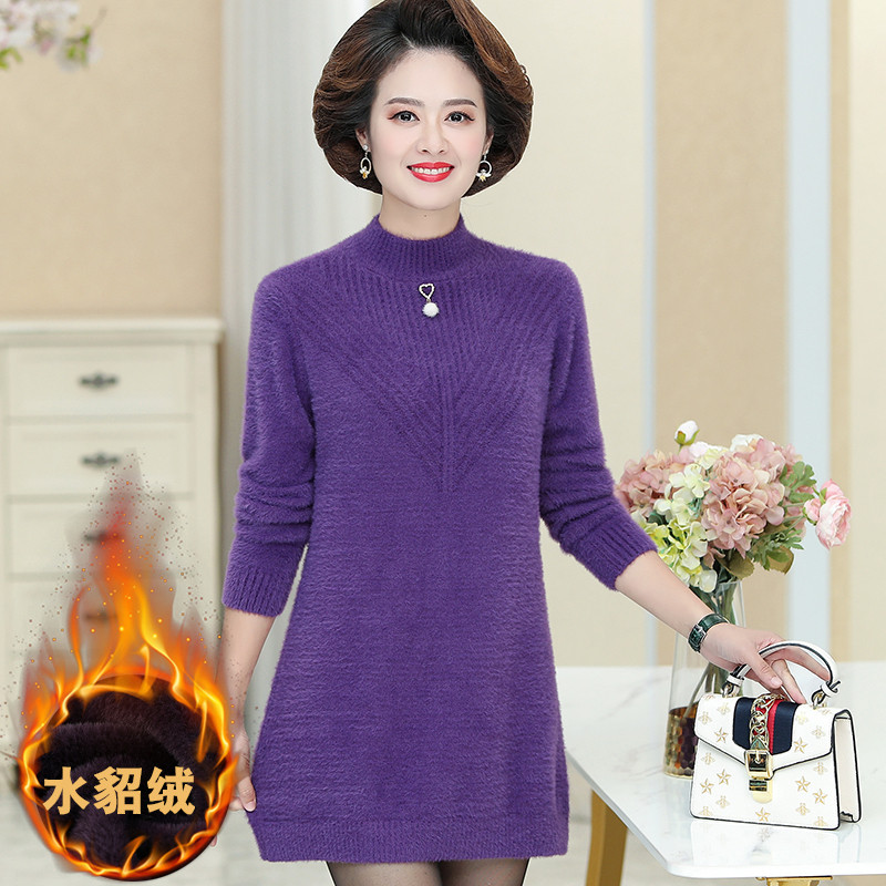 Arctic suede Winter middle-aged mummy loaded with velvet thickened mid-length version of the heat coat Bottom Jersey Mink Velvet Dress Woman