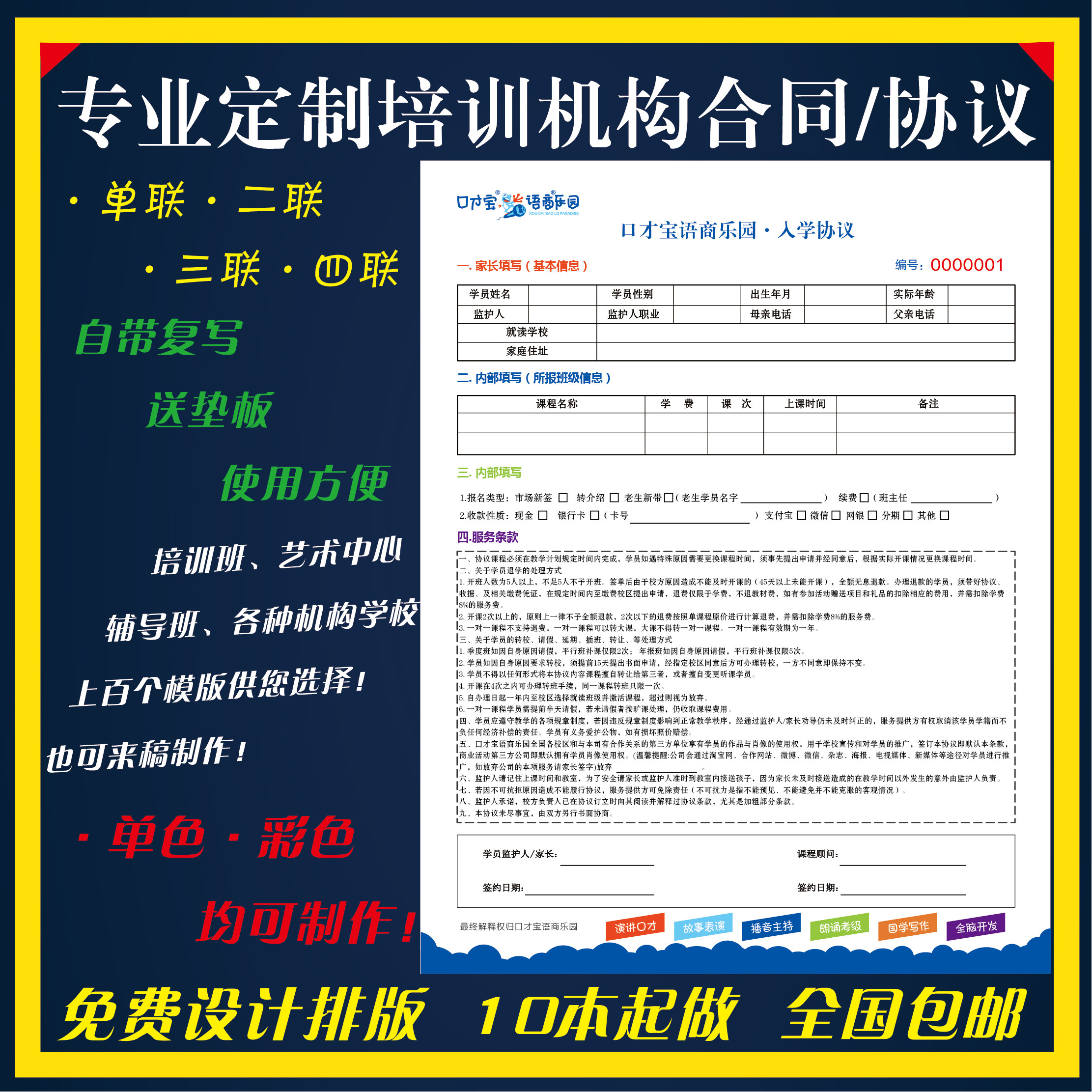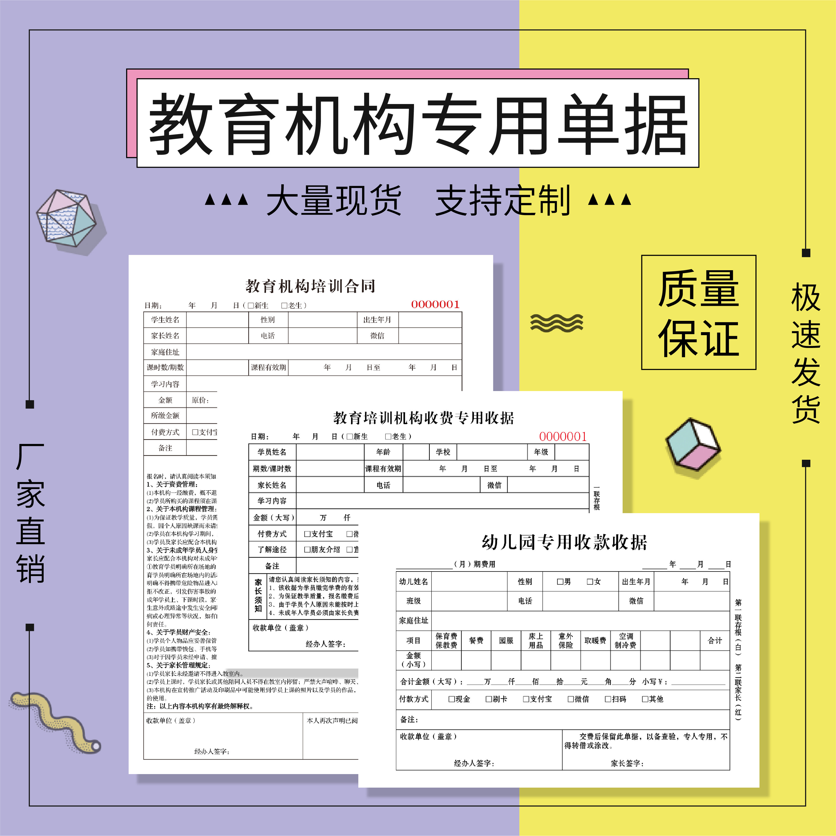Customized to do a special auction Set to do a special auction 1 Education and training institution contract two-in-one 2-pack spot Education and training institution contract two-in-one 5-pack spot Education and training institutions special receipts two-in-one 2 local spot Education and training institutions special receipts two-in-one 5 local spot kindergarten special receipts 2 pack spot kindergarten special receipts 5 packed spot