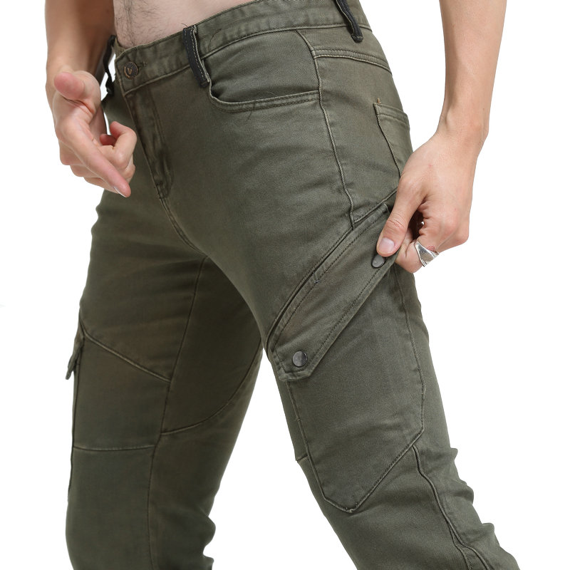 VOLERO Army Green Cultivation Locomotive Jeans Locomotive Riding Pants Tooling Anti-Fall Pants Lengthened Kneecap Adjustable