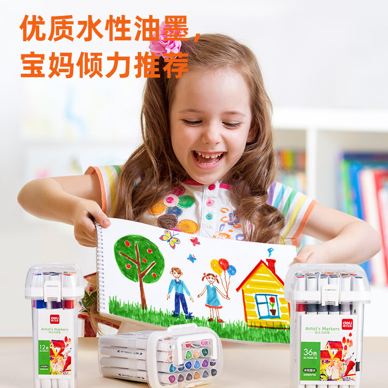 Deli 48 color color marker pen set painting pen Hand-painted soft head oily watercolor pen Double-headed art students draw 12 colors 36 colors for children's primary school students special water-based graffiti genuine 24 colors