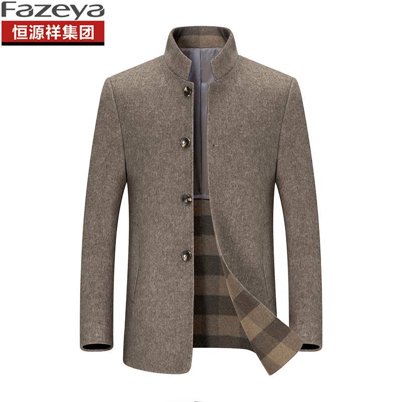 Hengyuan Xiang Caiyang autumn and winter men's Chinese stand collar suit men's middle-aged and elderly coat suit wool double-sided woolen coat