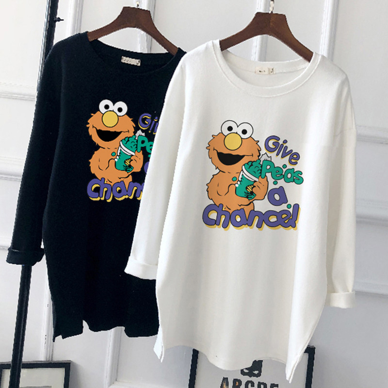 Pregnant woman's spring clothing blouse with long version of fashion Exterior Wearing Undershirt Loose Korean version Tide Pure Cotton Pregnant pregnant woman T-shirt Long sleeves