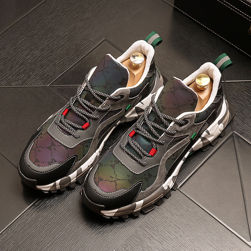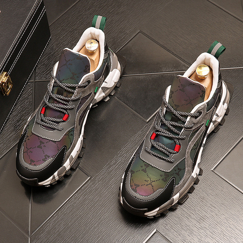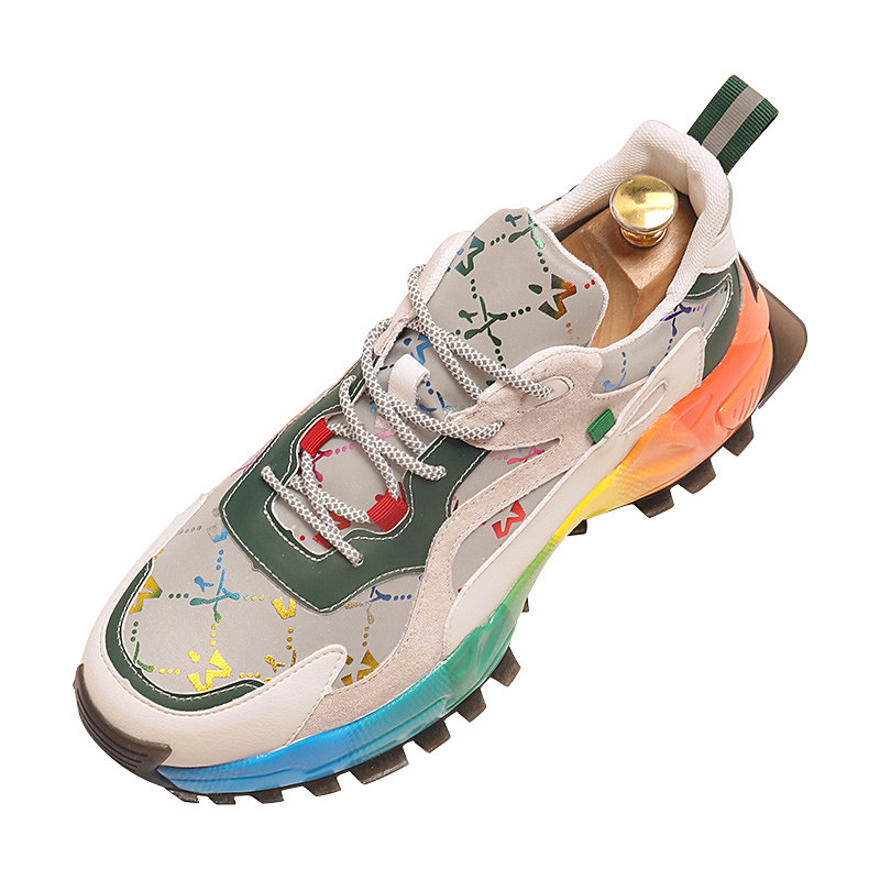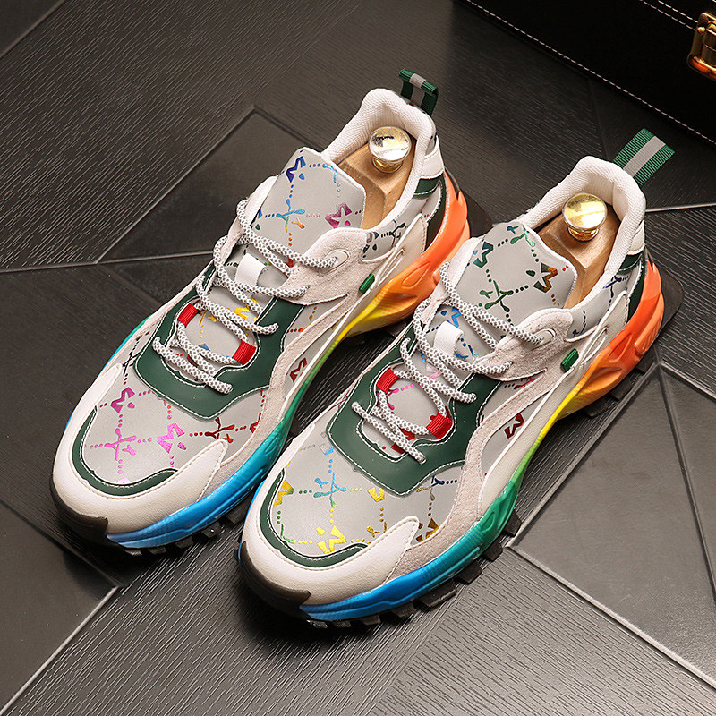 European station colorful daddy shoes men's British leather thick-soled heightening casual shoes personality color matching tide brand men's shoes