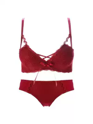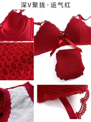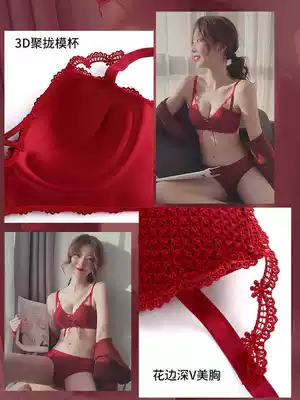 Underwear Women's Small breasts gather the original year red wedding dress beauty back pull underwear set without steel ring adjustment type
